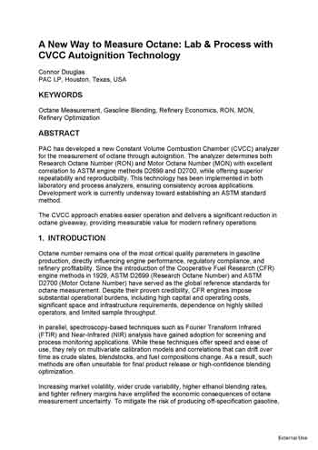 View PaperA New Way to Measure Octane: Lab & Process with CVCC Autoignition Technology
