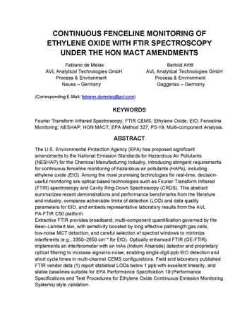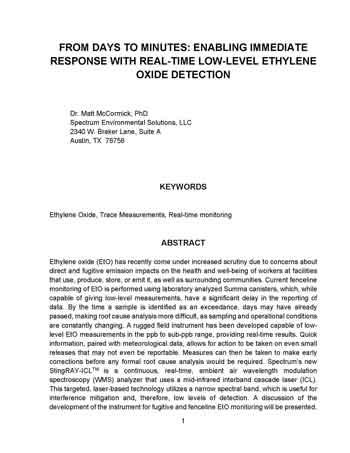 View PaperContinuous Fenceline Monitoring of Ethylene Oxide with FTIR Spectroscopy under the HON MACT