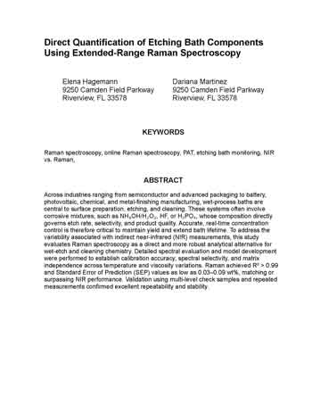Direct Quantification of Etching Bath Components Using Extended-Range Raman Spectroscopy