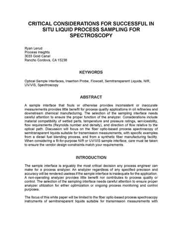 View PaperCritical Considerations for Successful In-Situ Liquid Process Sampling for Spectroscopy