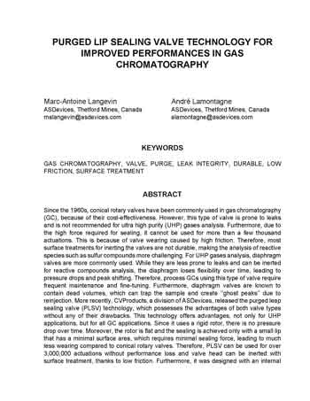 View PaperPurged Lip Sealing Valve Technology for Improved Performances in Gas Chromatography