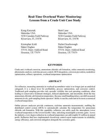 View PaperReal-Time Overhead Water Monitoring: Lessons from a Crude Unit Case Study