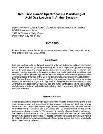 View PaperReal-Time Raman Spectroscopic Monitoring of Acid Gas Loading in Amine Systems