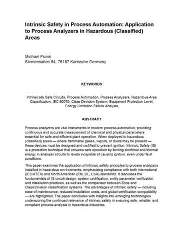 View PaperIntrinsic Safety in Process Automation: Application to Process Analyzers in Hazardous (Classified) Areas