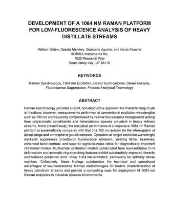 View PaperDevelopment of a 1064 nm Raman Platform for Low Fluorescence Analysis of Heavy Distillate Streams