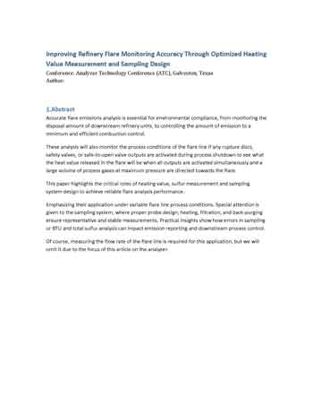 View PaperImproving Refinery Flare Monitoring Through Optimized Heating Value Measurement and Sampling Design