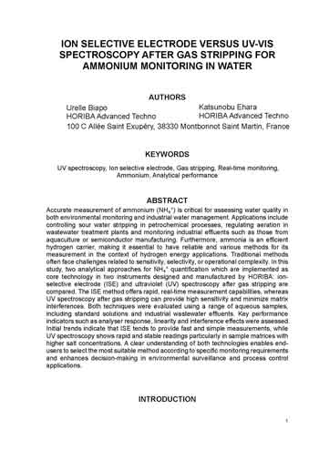 View PaperIon Selective Electrode Vs. UV-VIS Spectroscopy after gas stripping for Ammonium monitoring in Water